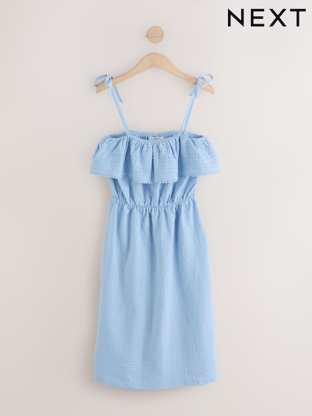 Apricot Blue Rick Rack Trim Trapeze Midaxi 100% Cotton Dress