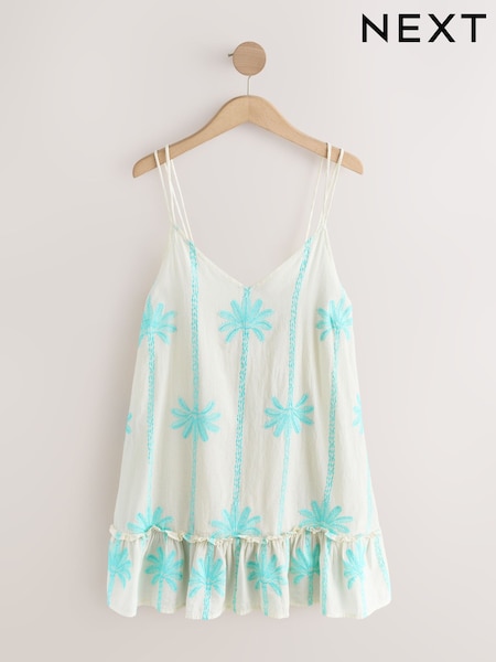 Aqua Blue Embroidered Palm Mini Dress