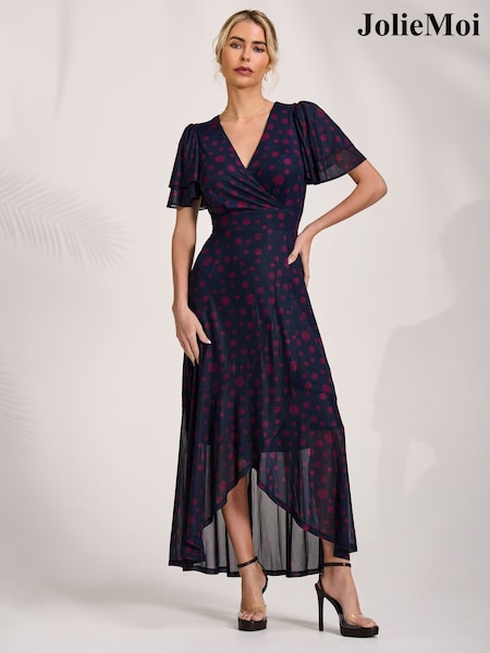 Jolie Moi Blue Angel Sleeve Mesh Maxi Dress