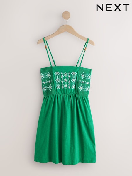 Green Mirror Detail Strappy Embroidered Detail Mini Dress
