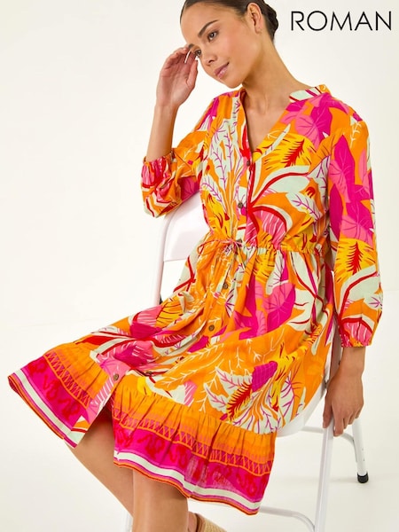 Roman Orange Leaf Print Double Layer 100% Cotton Dress