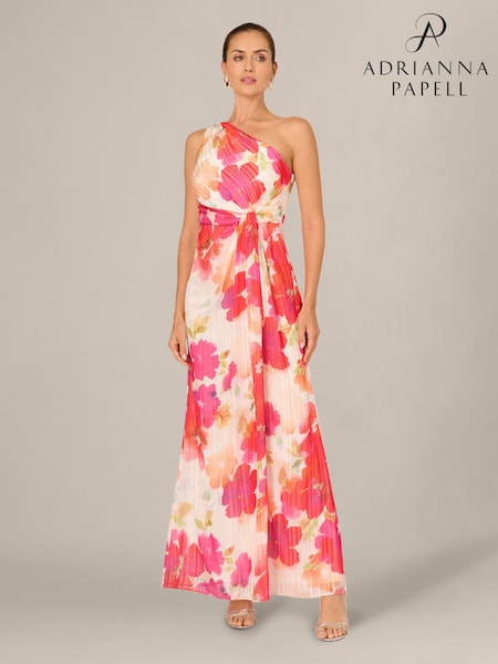 Adrianna Papell Pink One Shoulder Chiffon Gown