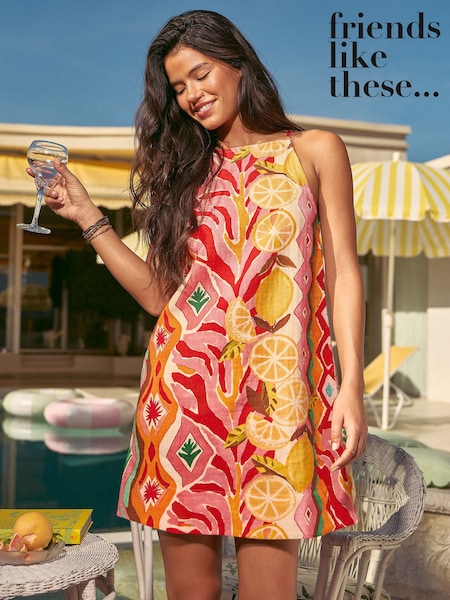 Friends Like These Pink/Yellow Sleeveless Mini Dress