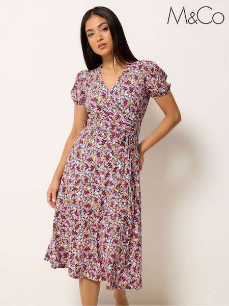 Jolie Moi Navy Floral Short Sleeve Printed Jersey Midi Dress