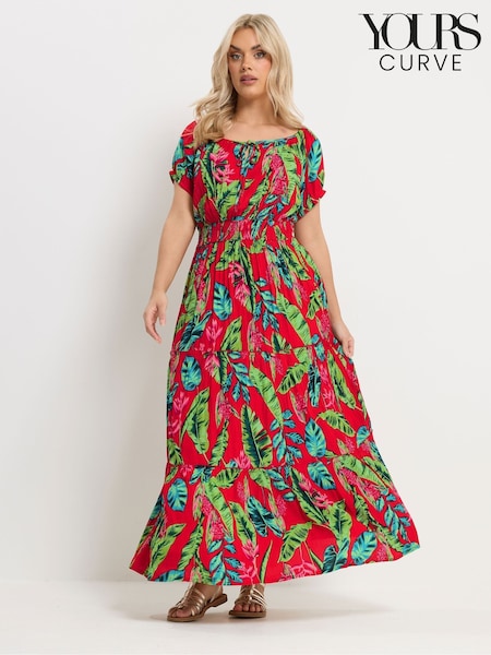 Yours Curve Red Tie Neck Bardot Maxi Dress