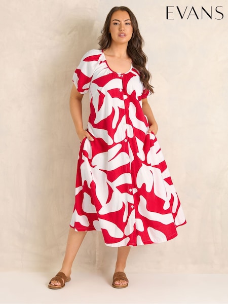 Evans Red Premium Linen Abstract Print Maxi Dress