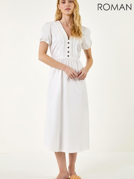 Sosandar White Crochet Detail Cap Sleeve Dress