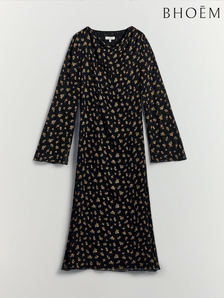 Jolie Moi Yellow Long Sleeve Frill Chiffon Midaxi Dress