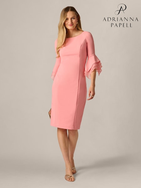 Adrianna Papell Pink Knit Crepe Tiered Sleeve Dress