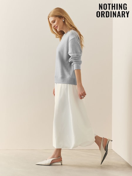 Nothing Ordinary Grey/White 2-in-1 Sweatshirt With Cotton Bubble Hem Skirt
