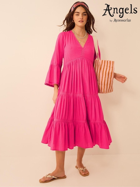 Mint Velvet Nude Crochet Cotton Midi Dress