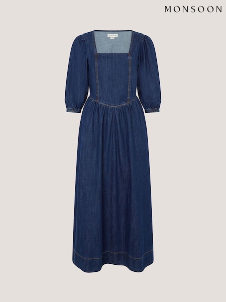 Monsoon Blue Lily Square Neck Denim Midi Dress