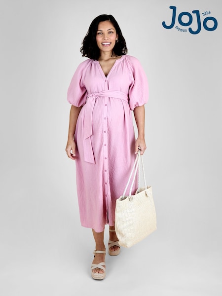 JoJo Maman Bébé Rose Pink Textured Button Through Maternity Shirt Dress