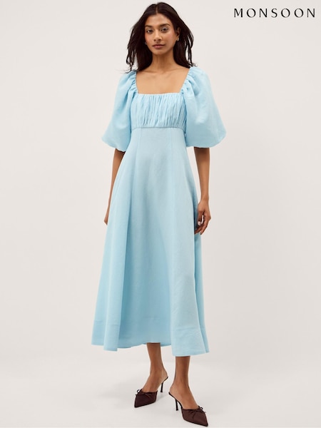 Monsoon Blue Payton Puff Sleeve Midi Dress