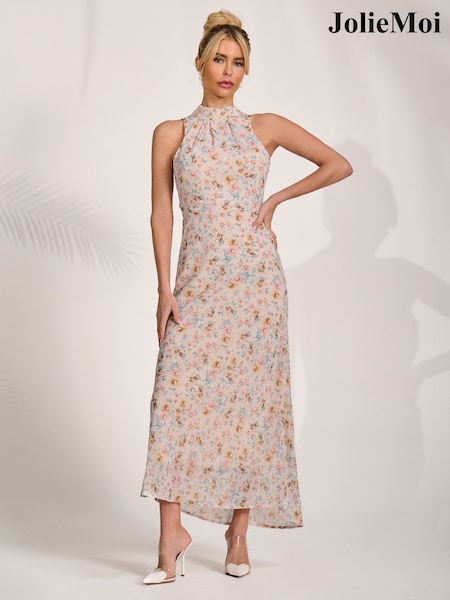Jolie Moi Natural Chiffon Halterneck Midaxi Dress
