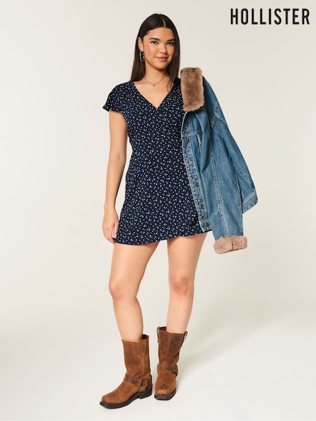 Hollister Blue Short-Sleeve Wrap Mini Dress