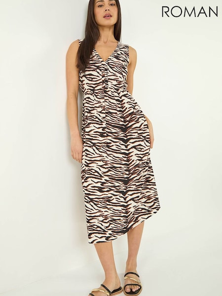 Roman Black Petite Abstract Print Midi Dress