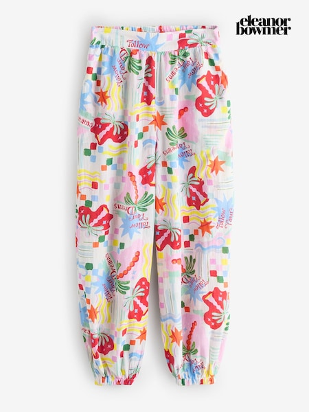 Eleanor Bowmer White/Blue Dreamer Print Cotton Balloon Beach Trousers