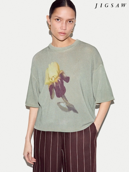 Jigsaw Green Georgette Ruffle Jersey Dress