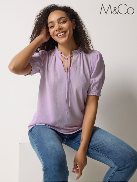M&Co Purple Tie Neck Frill Sleeve Blouse