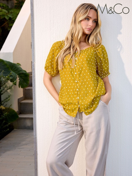 M&Co Yellow Dobby Button Up Blouse