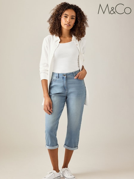 M&Co Blue Petite Velour Tapered Leg Trousers