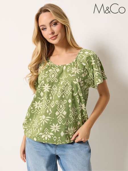 M&Co Green Cotton Scoop Neck Top