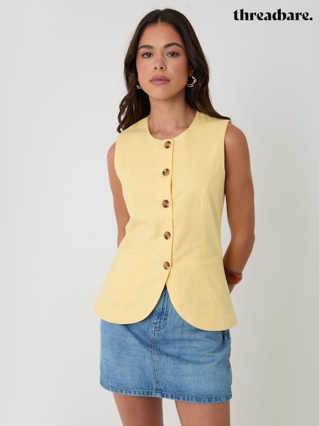 Threadbare Yellow Linen Blend Longline Waistcoat