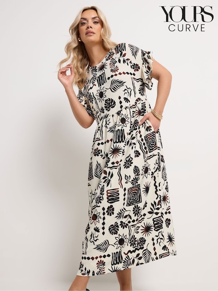 Yours Curve Cream Frilled Sleeve Midaxi Dress
