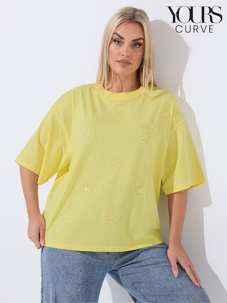 Yours Curve Yellow Limited Embroidered Floral T-Shirt
