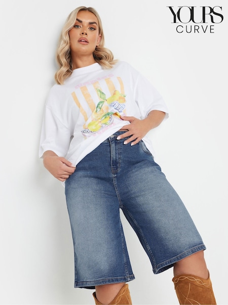 Yours Curve Light Blue Chambray Elastic Waist Shorts