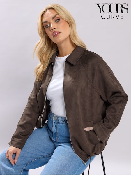 Yours Curve Brown Suedette Bomber Jacket