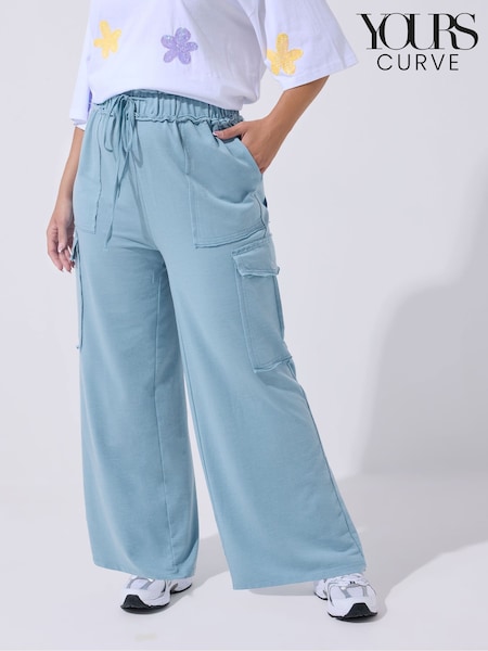 Yours Curve Blue Woven Cargo Cropped 100% Cotton Trousers