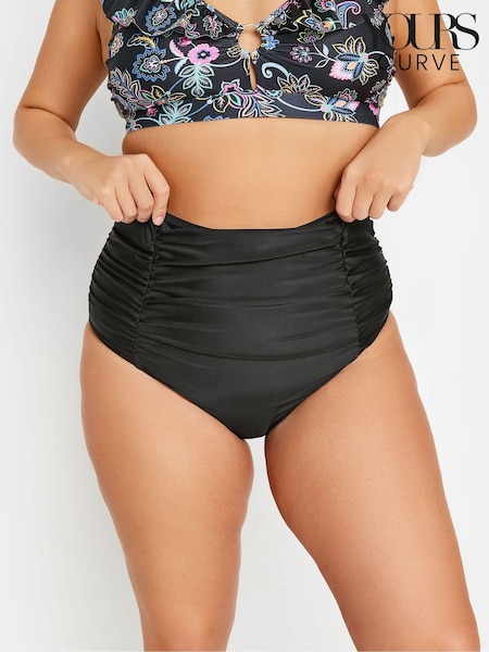 Yours Curve Black Ruched Super High Waisted Tummy Control Bikini Briefs