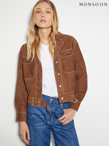 Monsoon Brown Iris Crop Suede Jacket