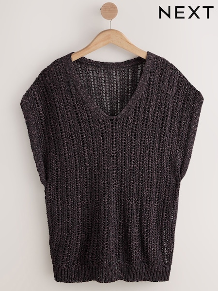 Chocolate Brown/Blue Stripe Crochet Trim Knitted Vest Top