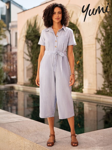 White Stuff Denim Blue Viola Linen Dungaree