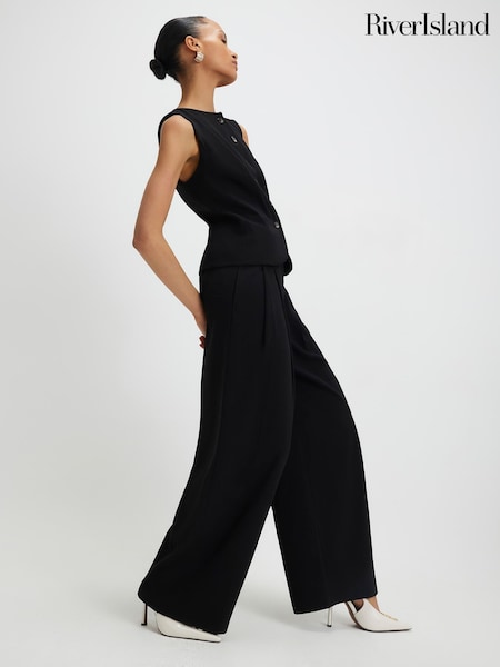 Black N. Premium Wide Leg Tailored Jersey Trousers