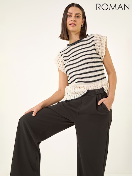 Roman Black Pleated Wide Leg Buttoned Trousers
