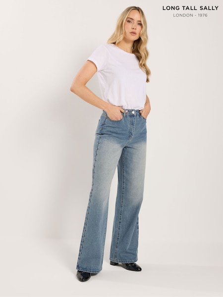 Long Tall Sally Blue Turn Up Wide Leg Jeans