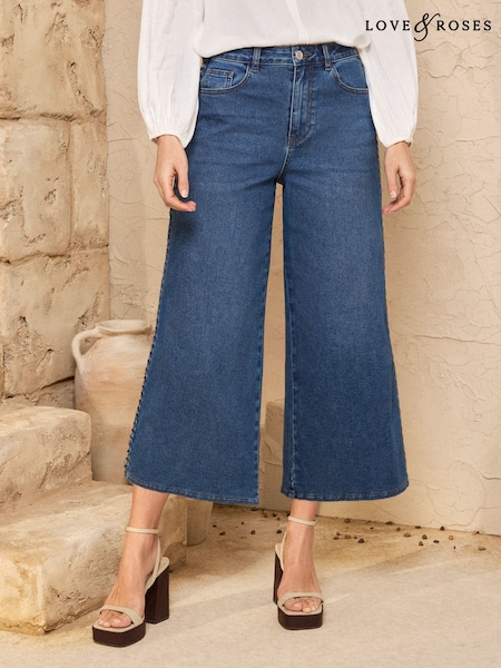 Love & Roses Mid Blue Crop Wide Plait Detail Jeans