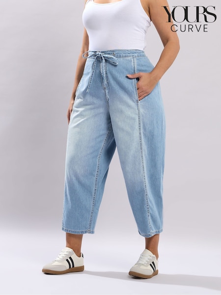 Yours Curve Light Blue Cropped Barrel Leg Jeans