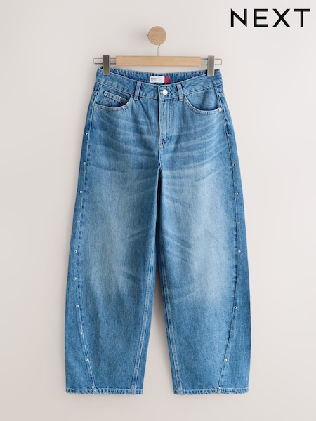 Silver Stud Mid Blue Twisted Seam Barrel Jeans