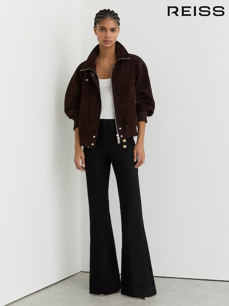 Reiss Black Athena Petite Button-Detail Flared Jeans