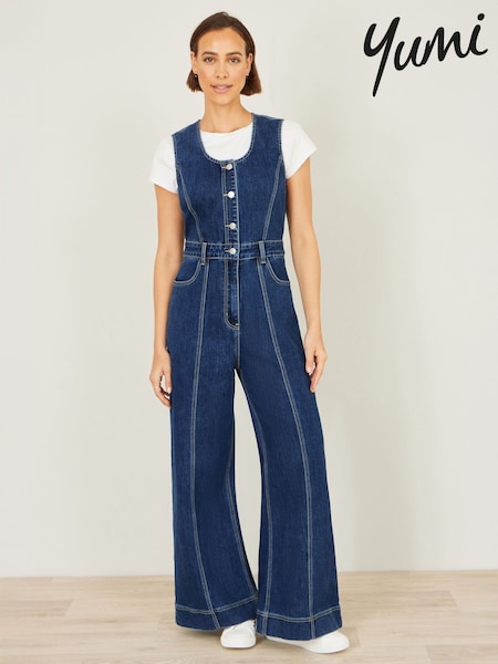 Yumi Blue 100% Cotton Denim Button Jumpsuit