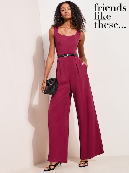 Friends Like These Burgundy Red Belted Wide Leg Jumpsuit