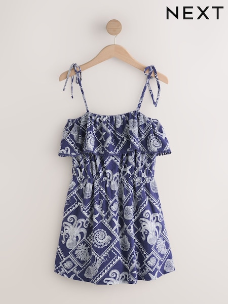 Blue/White Stripe Sleeveless Tie Waist Cotton Playsuit