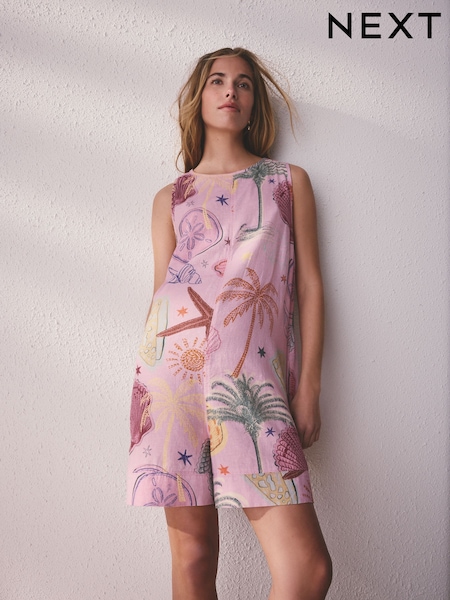 Reiss Navy Blue Taylor Linen Sleeveless Belted Playsuit