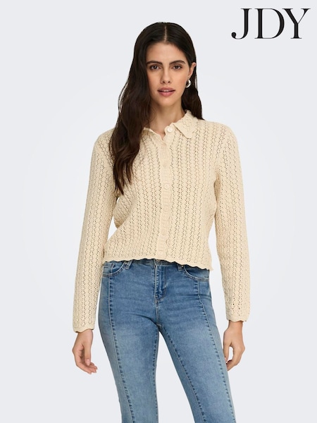 JDY Natural Knitted Crochet Cardigan With Collar Detail