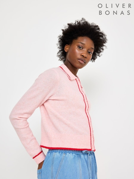 Oliver Bonas Pink Light Collared Knitted Cardigan
